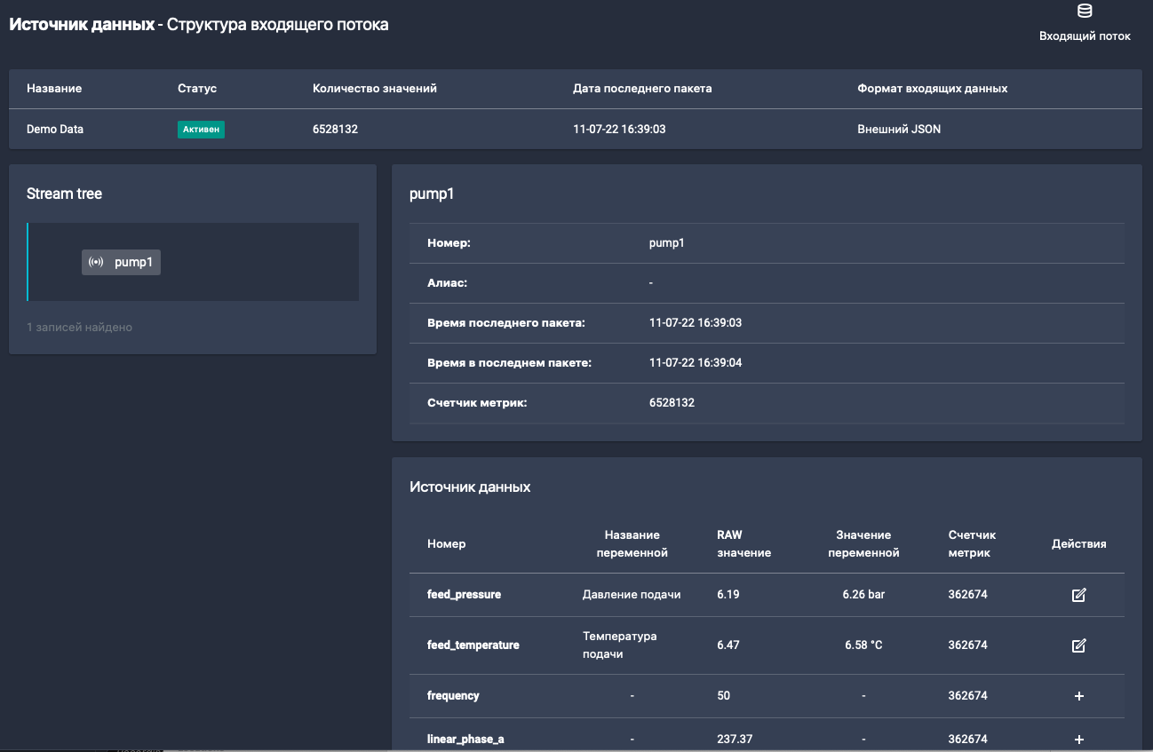 Перейдите в раздел “Источники данных” - “Входящие потоки” и выбере интересующий вас поток.